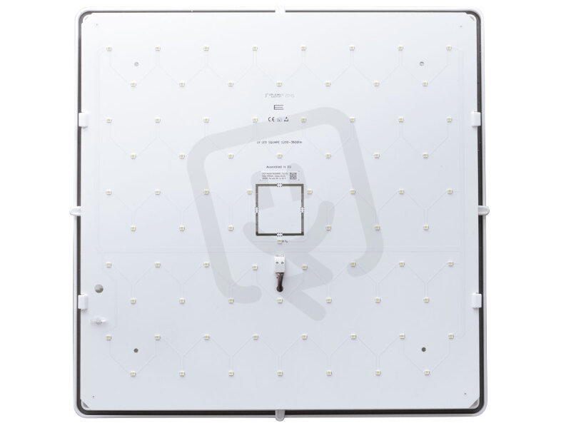 Čtvercové plastové interiérové LED svítidlo na přisazení ke stropu nebo na stěnu s nárazuvzdorným difuzorem z translucentního polykarbonátu.