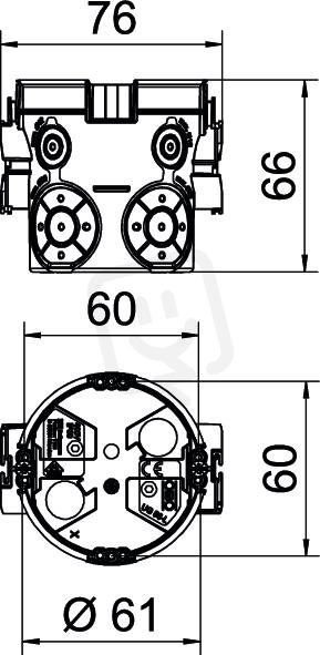 Přístrojová krabice pod omítku se vzduchotěsnými membránovými vývody, pro použití ve zdivu s montážní hloubkou nejméně 66 mm.