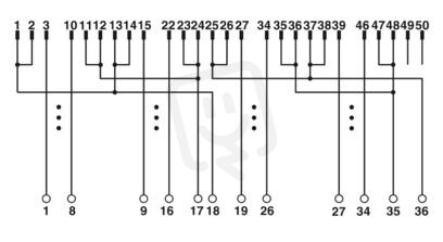 Předávací modul, přípojka 1: IDC/FLK lišta s trny 1x 50-pólový, přípojka 2: Šroubové připojení 40-pólový, počet kanálů: 16