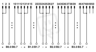 Předávací modul, přípojka 1: Šroubové připojení 40-pólový, přípojka 2: IDC/FLK lišta s trny 1x 50-pólový, počet kanálů: 32