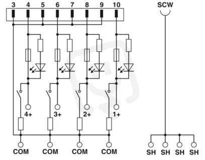 Bezpečnostní modul, přípojka 1: Šroubové připojení 6-pólový, přípojka 2: IDC/FLK lišta s trny 1x 10-pólový, počet kanálů: 4