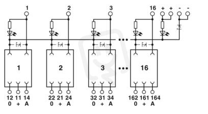 Modul VARIOFACE, pro 16 zasouvacích miniaturních nebo miniaturních optoelektrických relé, se světelnou indikací, vstupní napětí 24 V DC