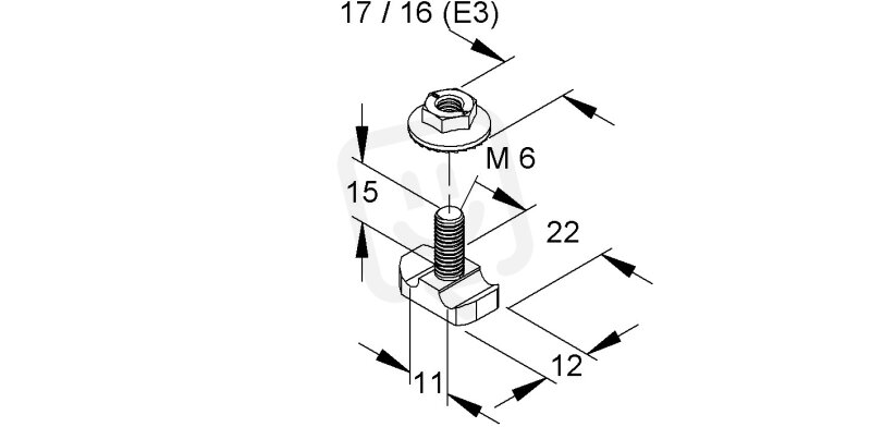 Univerzální spojka drátěných žlabů, s maticí s přírubou, ocel GRHKM 6X15 F