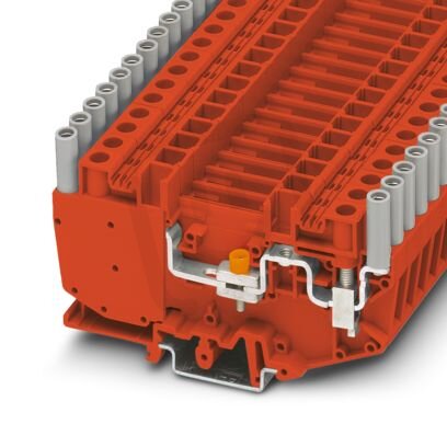 Rozpojovací svornice měřicího převodníku, s můstkovým kluzákem, jmenovité napětí: 500 V, jmenovitý proud: 41 A, typ připojení: Šroubové připojení, 1. Patro, Jmenovitý průřez: 6 mm², průřez: 0,5 mm² - 10 mm² , způsob montáže: NS 35/7,5, NS 35/15, NS 32, barva: červená