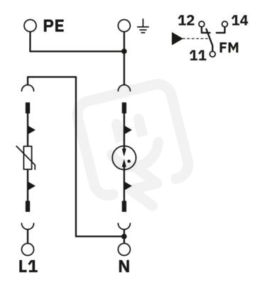 Svodič přepětí pro 3vodičové systémy napájecích zdrojů (L1, N, PE), sestávající ze základny s kontaktem FM a ochranných hlavic, pro montáž na NS 35.
