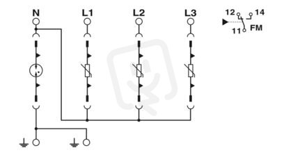 Svodič přepětí tvořený základnou s kontaktem dálkové signalizace a výměnnými ochrannými hlavicemi, k montáži na 35/7,5, jmenovité napětí: 320 V AC, zapojení 3 + 1