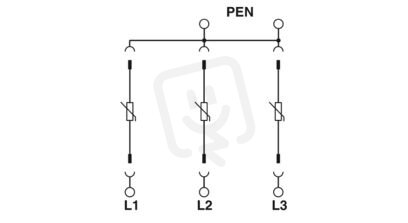 Svodič přepětí pro 4vodičové systémy napájecích zdrojů (L1, L2, L3, PEN), sestávající ze základny a ochranné hlavice, pro montáž na NS 35.