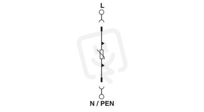 Univerzální výměnný svodič proudu svodič přepětí nab bázi varistoru pro 1fázovou síť napájecího zdroje se společným N a PE (2vodičová soustava: L1, PEN).