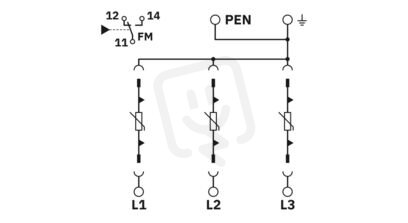 Univerzální výměnný svodič proudu svodič přepětí nab bázi varistoru pro 3fázovou síť napájecího zdroje se společným N a PE (4vodičová soustava: L1, L2, L3, PEN), s kontaktem dálkového hlášení.