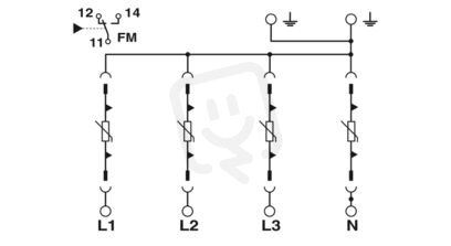 Výměnný svodič proudu blesku na bázi varistoru pro 3fázové sítě elektrického napájení TN-S s odděleným N a PE (5vodičová soustava: L1, L2, L3, N, PE), pro třídy ochrany před bleskem III a IV, s kontaktem dálkové signalizace.
