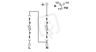 Svodič přepětí, podle UL typ 1 a podle IEC typ 2, dvoukanálový s kontaktem dálkového hlášení, na 277 V AC, 2 žíly plus zem.