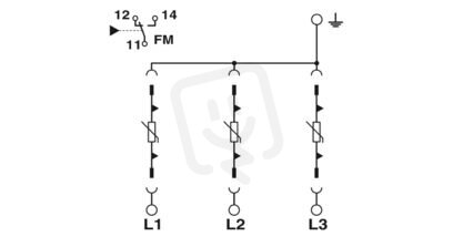 Svodič přepětí, podle UL typ 1 a podle IEC typ 2, tříkanálový s kontaktem dálkového hlášení, na 277/480 V AC, 4 žíly.