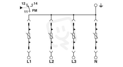 Svodič přepětí, podle UL typ 1 a podle IEC typ 2, čtyřkanálový s kontaktem dálkového hlášení, na 277/480 V AC, 4 žíly plus zem.