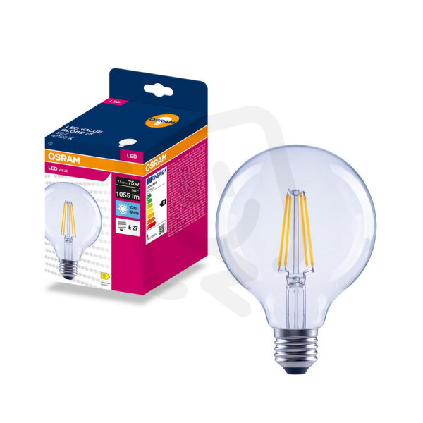 LED FILAMENT GLOBE VALUE 7.5W 4000K Clear E27 OSRAM 4099854570261