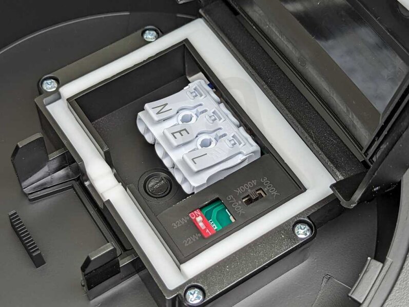 Zapojení svítidla urychluje snadno dostupná bez šroubová svorkovnice.