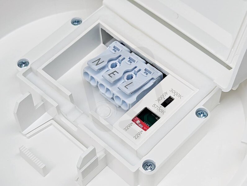 Zapojení svítidla urychluje snadno dostupná bez šroubová svorkovnice.