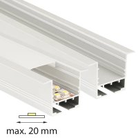 Vestavný hliníkový profil pro sádrokarton, rozměry průřezu cca 35x25mm. Součástí je mléčný difuzor, který lze do profilu nacvaknout. Tento profil je určen pro krytí a chlazení LED pásků do šíře až 20mm a výkonu max. 28,8W/m. Profil lze upevnit pomocí montážních pérek, vrutů nebo lepidla. K profilu lze zakoupit také koncovky. Délka 2m.