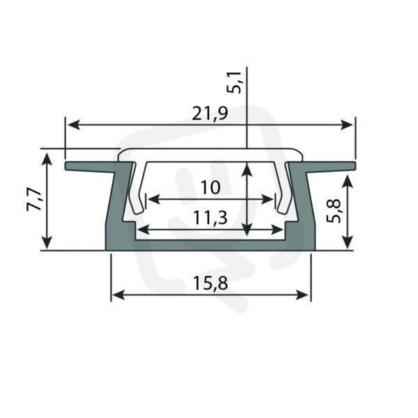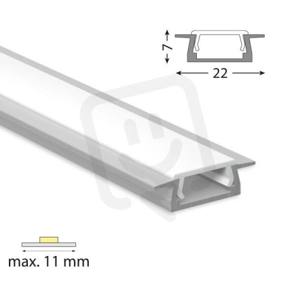 Vestavný hliníkový profil VR2,22x7mm,2M
