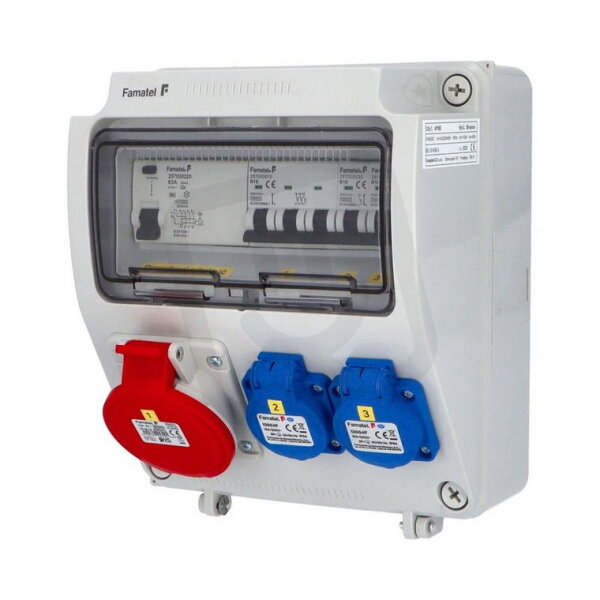 Zásuvková skříň FAMATEL vf165-4pol IP54 jištěná s chráničem 63/4/003-A