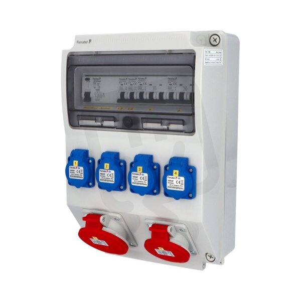Zásuvková skříň FAMATEL vf340-4pol IP54 jištěná s chráničem 63/4/003-A