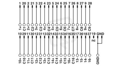 Předávací modul, přípojka 1: Šroubové připojení, přípojka 2: Lišta s trny D-SUB 1x 37-pólový, počet kanálů: 16, řídicí logika: kladně spínající