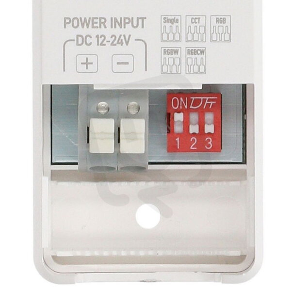 Wifi přijímač Tuya - řízení jasu, CCT, RGB, RGBW, RGB+CCT, max. 5x8A (total max. 24A), 12-24VDC, bílý, IP20