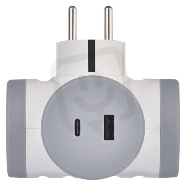Rozbočovací zásuvka 2×, 1×USB-A+1×USB-C, bílo-šedá EMOS P0076PD