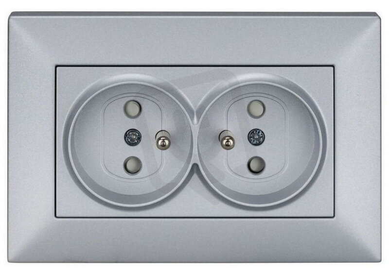 Zásuvka UTE PL dvojitá zrcadlová, šroubové svorky, stříbrná SCHRACK EV121061--