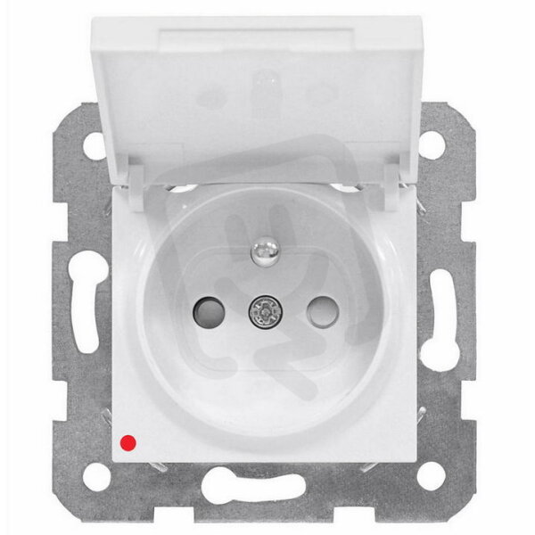 Zásuvka ČSN s clonkou a přepěťovou ochranou, klapka, bílá SCHRACK EV101053CZ