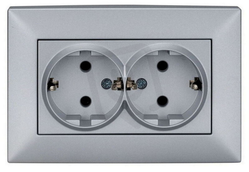 Zásuvka SCHUKO dvojitá, šroubové svorky, stříbrná SCHRACK EV121013--