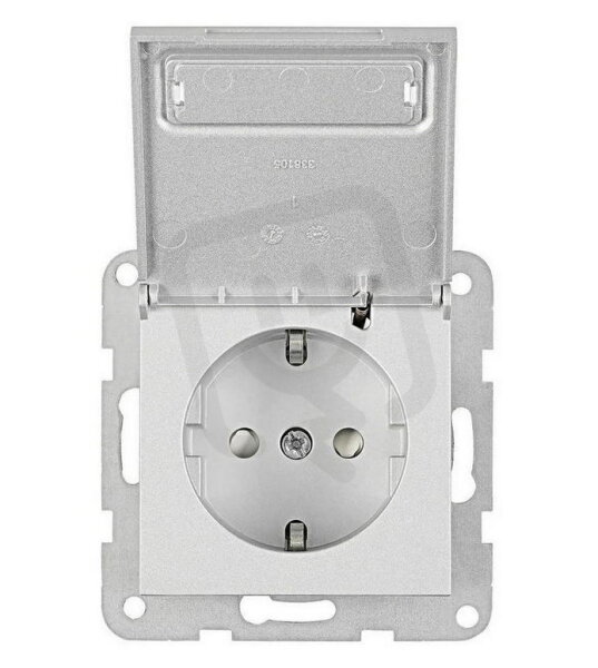 Zásuvka SCHUKO s klapkou a popisový polem, stříbrná SCHRACK EV121320--