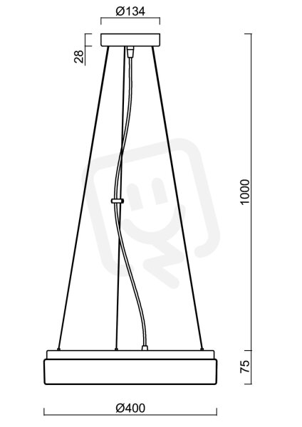 Bílé závěsné LED svítidlo nouzové kombinované a PMMA stínidlo. Lankový závěs (s přívodním kabelem) o délce 100 cm.