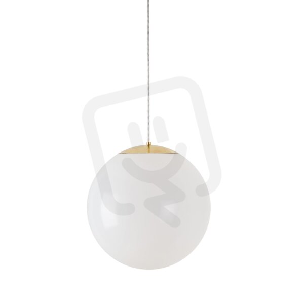 Mosazné závěsné vysokovýkonné LED svítidlo ON/OFF a polyetylenové stínidlo. Kabelový závěs s vnitřním nosným lankem o délce 100 cm.