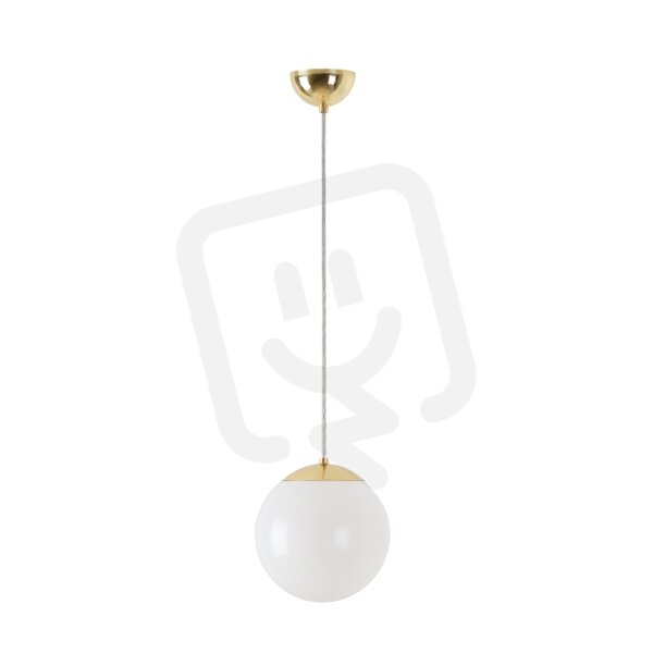 Mosazné závěsné LED svítidlo ON/OFF a PMMA stínidlo. Kabelový závěs s vnitřním nosným lankem o délce 100 cm.
