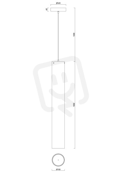 Bílé závěsné LED svítidlo ON/OFF a PMMA stínidlo. Kabelový závěs s vnitřním nosným lankem o délce 100 cm.