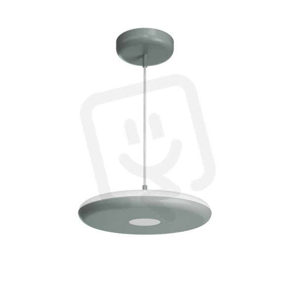 Šedé závěsné LED svítidlo ON/OFF s nepřímým svícením a matovaným PMMA stínidlem. Textilní kabelový závěs s vnitřním nosným lankem o délce 100 cm.