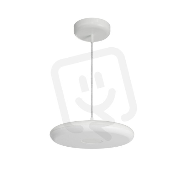 Bílé závěsné LED svítidlo DALI s přímým svícením a matovaným PMMA stínidlem. Textilní kabelový závěs s vnitřním nosným lankem o délce 100 cm.
