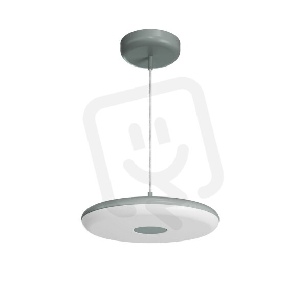 Šedé závěsné LED svítidlo DALI s přímým svícením a matovaným PMMA stínidlem. Textilní kabelový závěs s vnitřním nosným lankem o délce 100 cm.