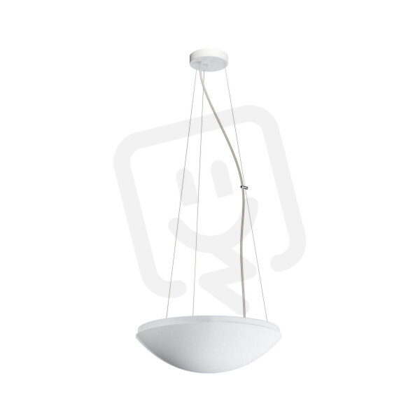 Bílé závěsné LED svítidlo DALI a polykarbonátové stínidlo. Lankový závěs (s přívodním kabelem) o délce 100 cm.
