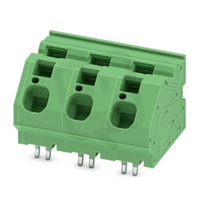 Nevyměnitelná svorka desky s plošnými spoji, jmenovitý proud: 76 A, jmenovité napětí (III/2): 1000 V, jmenovitý průřez: 10 mm², počet řad: 1, počet pólů na řadu: 3, řada výrobků: ZFKDS(A) 10, rozteč: 15 mm, typ připojení: Pružinová svorka, montáž: Vlnové pájení, směr připojení vodič/deska: 45 °, barva: zelená, Pin-Layout: Lineární pinning, Délka pinu [P]: 6,5 mm, počet pájecích kolíků na každý potenciál: 4, způsob balení: zabaleno v krabici