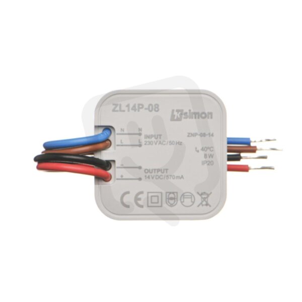 Napájecí zdroj pro LED 14V, DC, 8W do krabice KONTAKT SIMON ZL14P-08