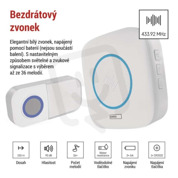 Domovní bezdrátový zvonek P5736 na 3× AA EMOS P5736